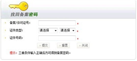 輸入您以前備案時(shí)的信息,提交后會(huì)將密碼發(fā)送到當(dāng)時(shí)負(fù)責(zé)人的手機(jī)或郵箱里。