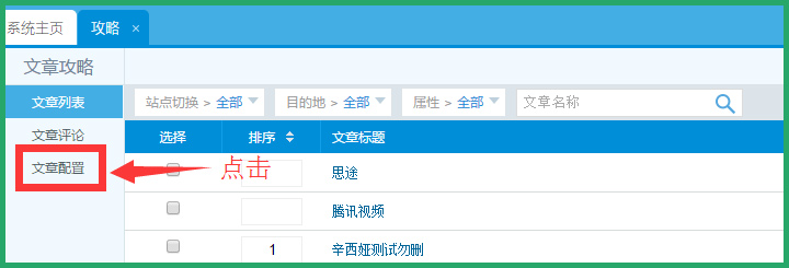 產品與文章系統是至關重要的,其中包含此次旅游前往的目的地,以及相關優惠推薦和詳細介紹。文章系統的目的地屬性設置步驟如下圖: