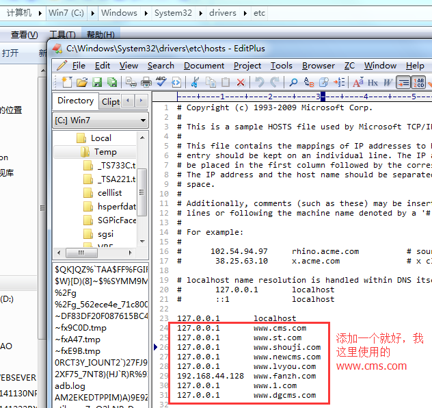 現(xiàn)在我們已打開hosts文件,然后我們找到該文件里的“127.0.0.1 localhost”