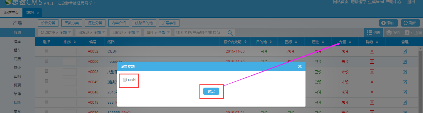 點擊保存按鈕生成專題,在后臺點擊專題跳轉到前臺,獲得專題鏈接