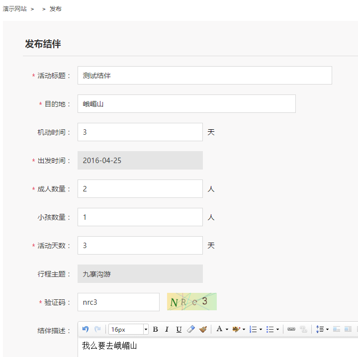 6、點擊發布后,您的結伴就完成了?,請登錄后臺查看您的訪客提供的結伴需求吧
