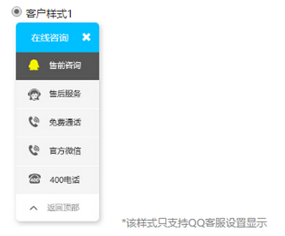 (2)客戶樣式2:只支持QQ客服設置顯示