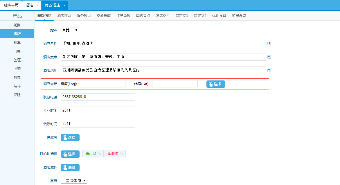 第二步:在后臺(tái)設(shè)置景點(diǎn)和酒店產(chǎn)品地圖坐標(biāo)