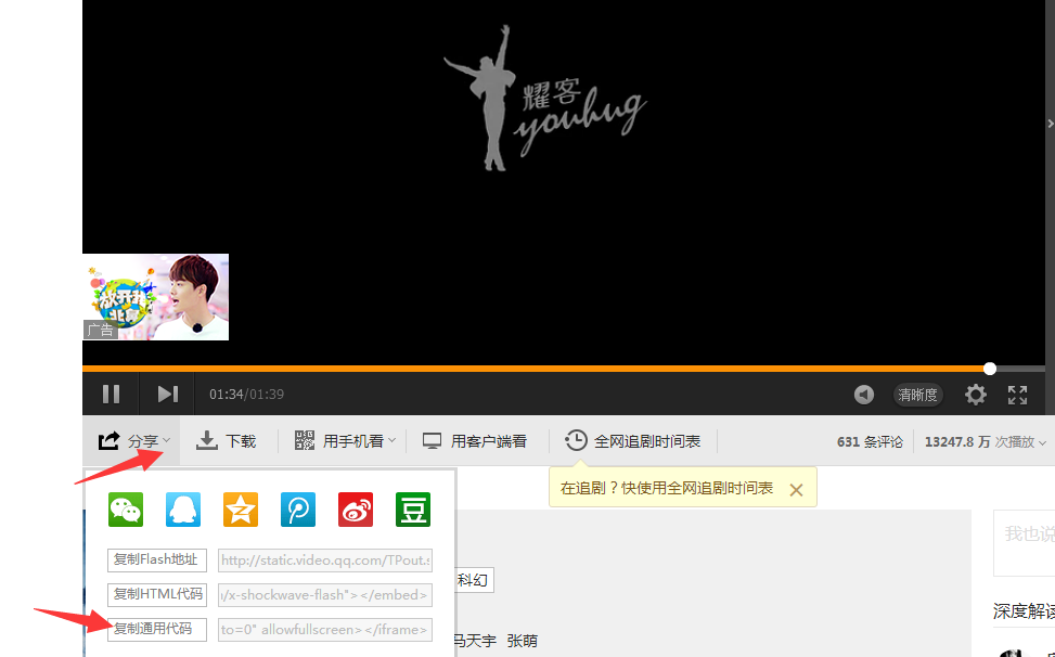 首先:將需要展示的視頻,上傳到騰訊視頻或愛奇藝第三方視頻網(wǎng)站平臺(tái)