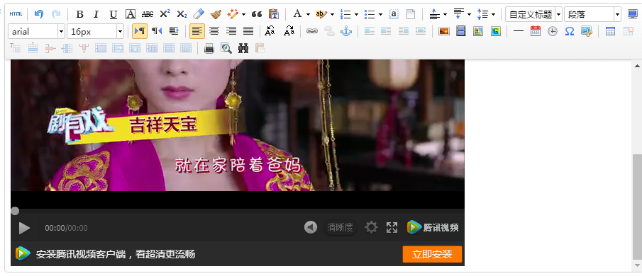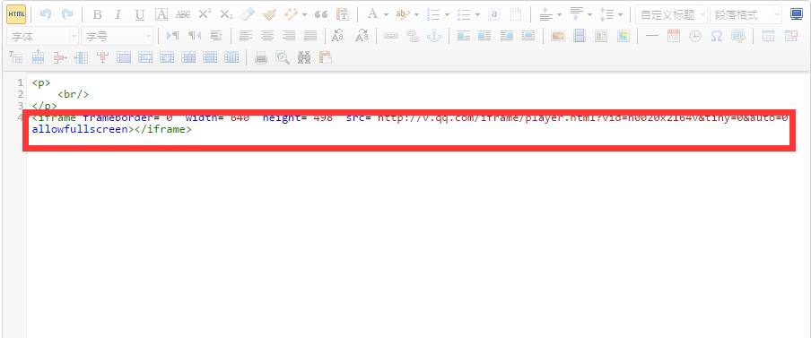 將獲取的地址復(fù)制粘貼在后臺(tái)編輯器插入視頻的位置