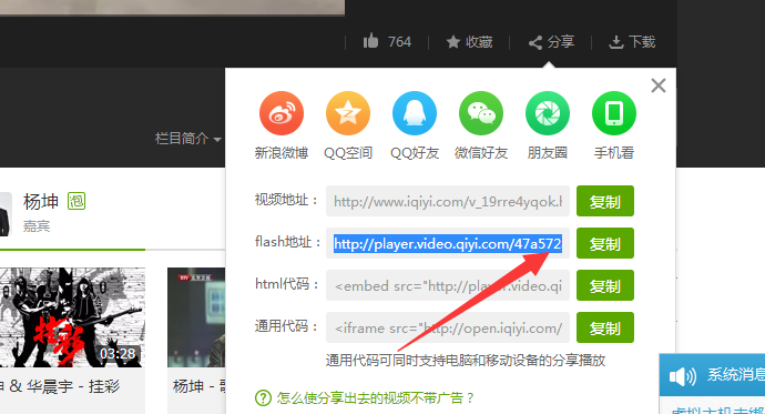 將視頻的分享鏈接地址復(fù)制下來