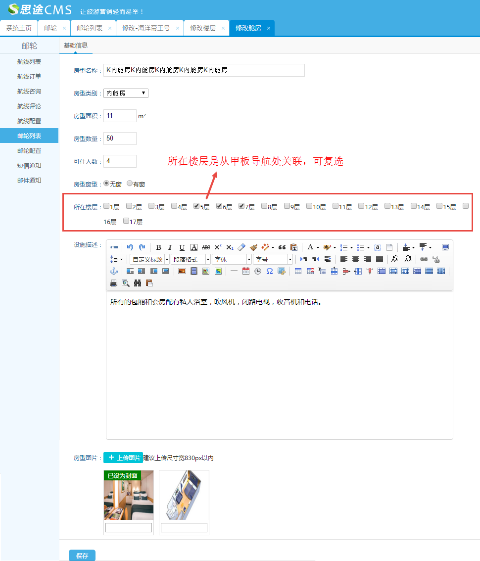 PS:艙房和服務設施是從房型信息和服務設施關聯進來的,不需要填寫