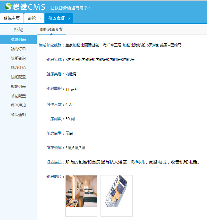 2、添加郵輪,在郵輪列表添加郵輪產品