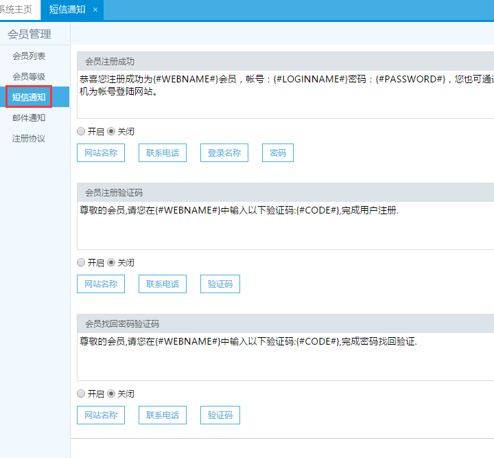 ?注冊驗證碼:會員收不到短信驗證碼,注冊流程將無法繼續,所以建議沒有購買短信的用戶關閉此條