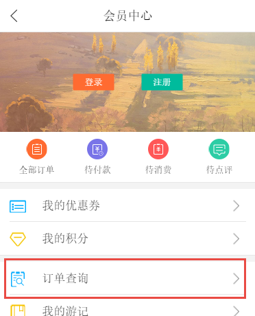 (1)在未登錄的情況下,點擊訂單查看、我的優惠券、我的積分、我的游記、我的結伴、我的咨詢、我的常用