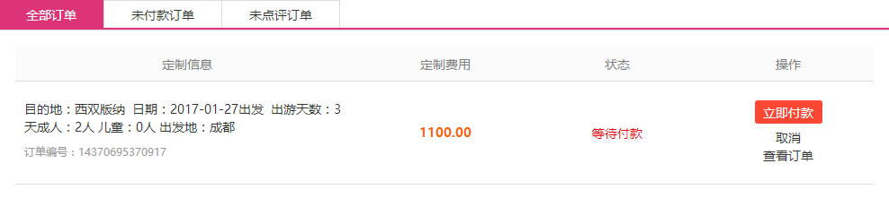 (4)前臺在會員中心查看訂單詳情:可以選擇付款和取消訂單后臺系統配置中勾選了游客信息和發票,則需要填寫信息: