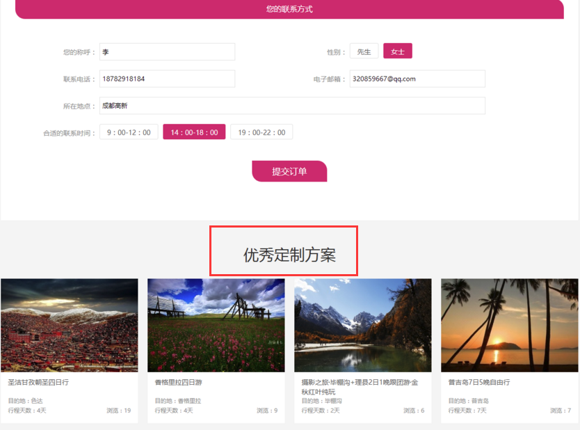 3、方案添加成功后在私人定制首頁下方“優秀方案”處展示