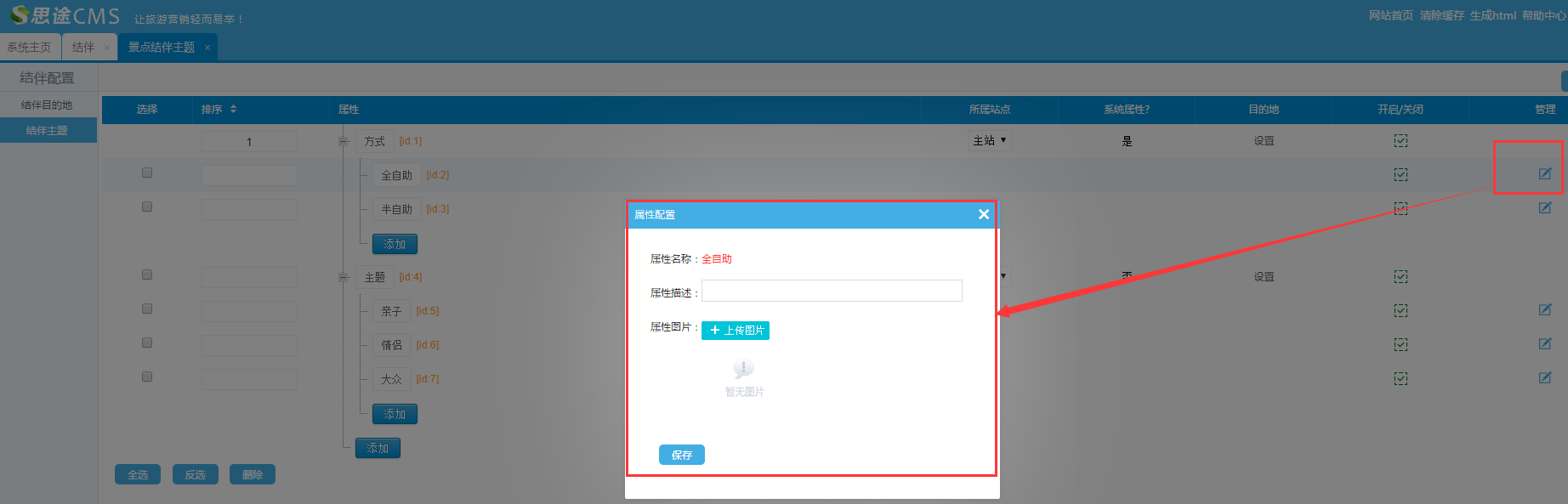 (1)點(diǎn)擊管理,可設(shè)置主題屬性的描述和圖片
