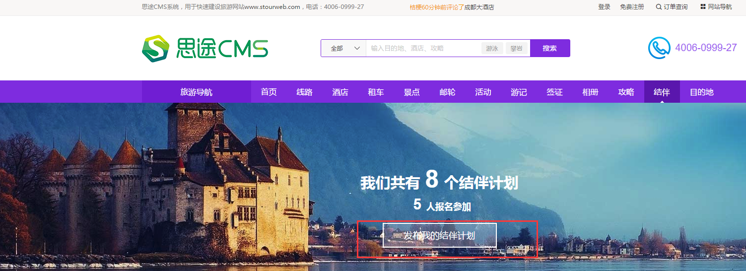 1、游客在結(jié)伴首頁點(diǎn)擊“發(fā)布我的結(jié)伴計劃”. 支持PC和移動端發(fā)布。