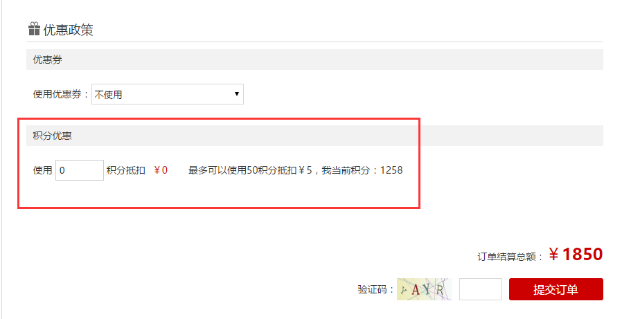 若產(chǎn)品中未選擇自定義的積分抵現(xiàn)策略,則默認(rèn)使用全局策略