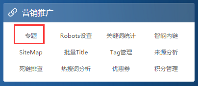 (1)專題入口:營銷推廣--->專題