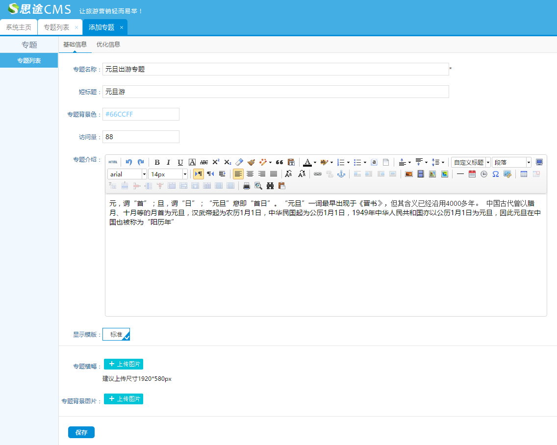 默認的專題橫幅和背景,若自定義上傳后會替換為上傳的橫幅和背景: