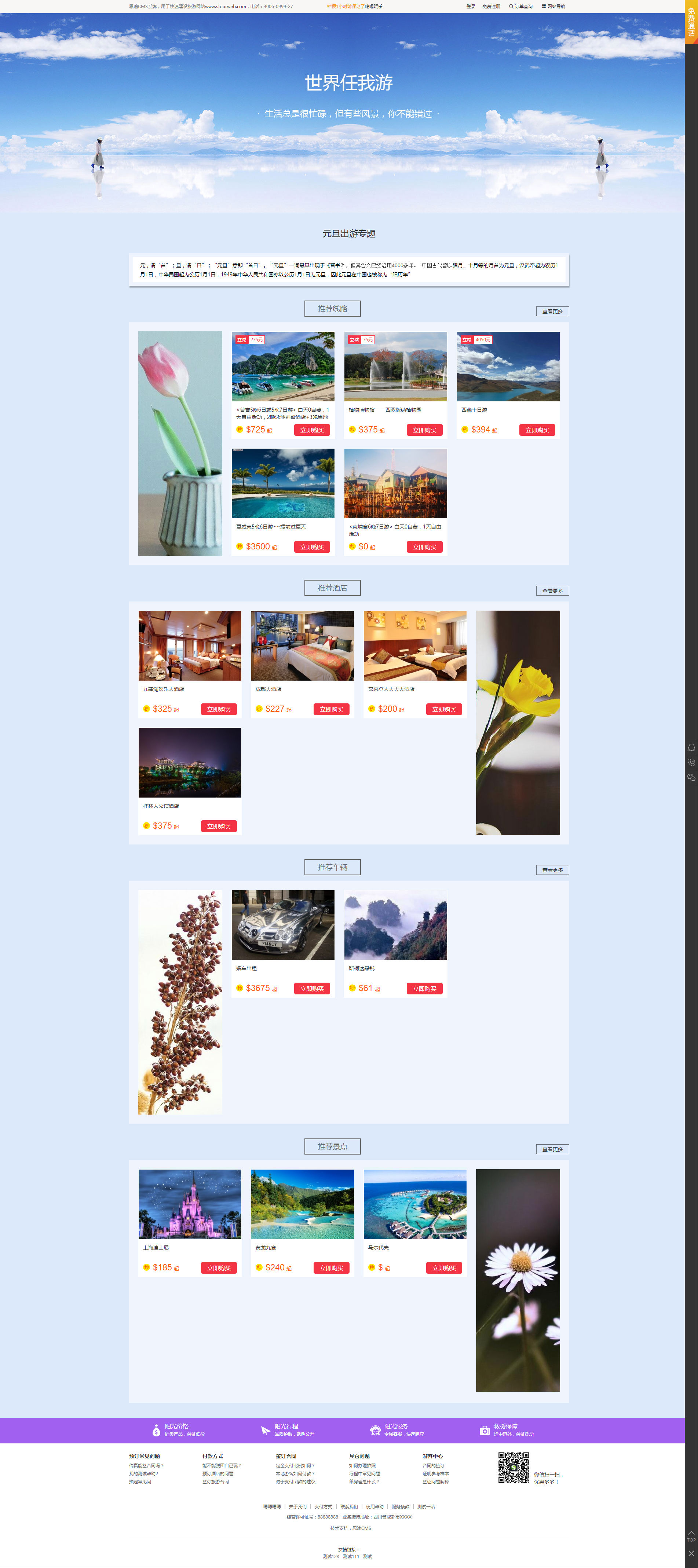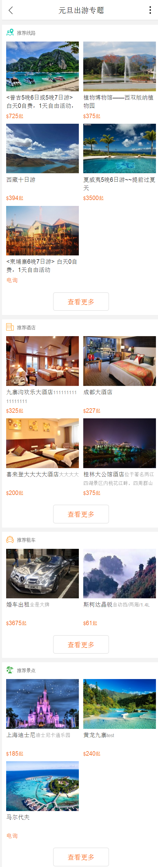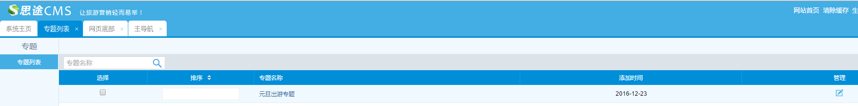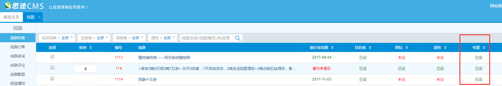 PS:需要添加產品以后,才會有內容顯示,目前專題支持四個產品:線路、酒店、租車、景點