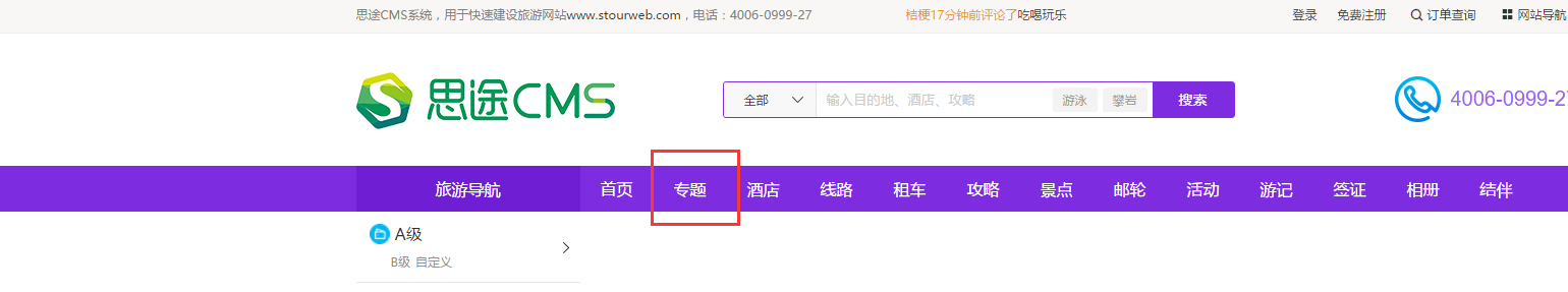 B、需要添加產品以后,才會有內容顯示,目前專題支持四個產品:線路、酒店、租