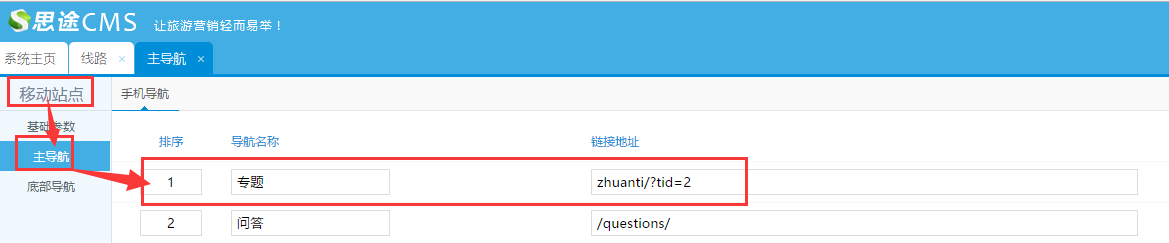 ?3、手機專題頁展示 (1)在主導航添加入口:移動站點--->主導航--->添加專題