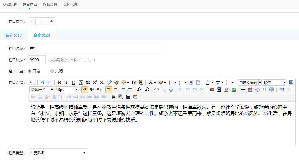 (2)添加產品欄目:只支持已經購買安裝的產品