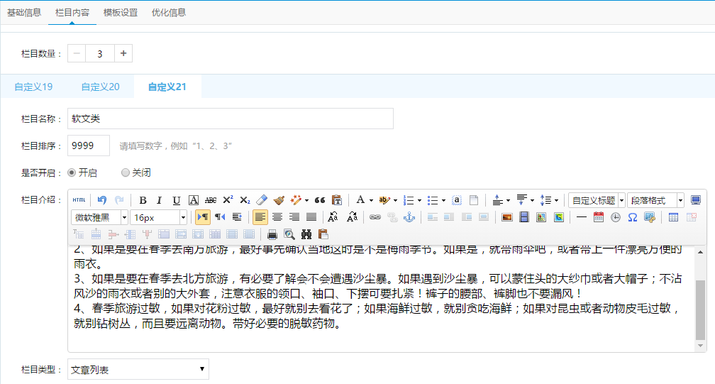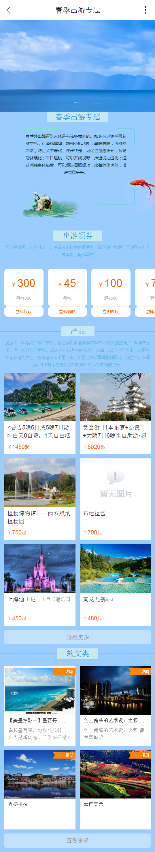 2、欄目內容:可添加優惠券和產品以及軟文顯示