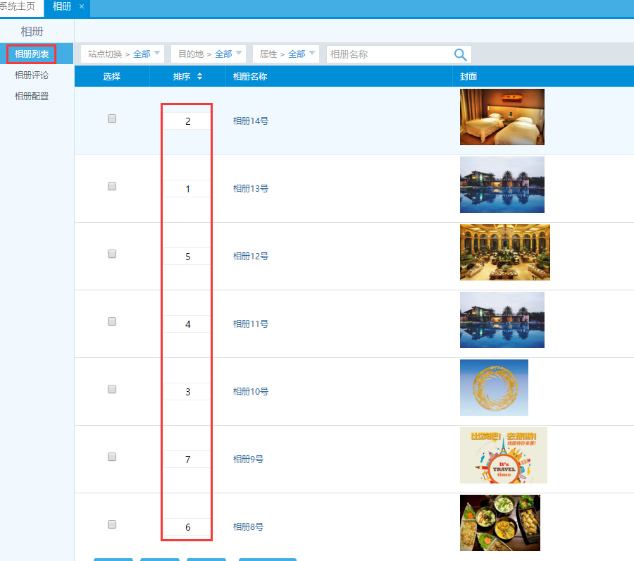 此版塊只展示相冊欄目中的產品,產品排序按后臺的數字排序從小到大展示前12個開啟狀態的產品(由于界面比較長,所以截圖只到第7位):間接營銷》相冊