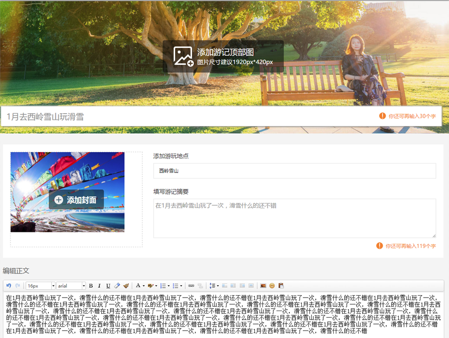 前臺(tái)就可以顯示游記界面: