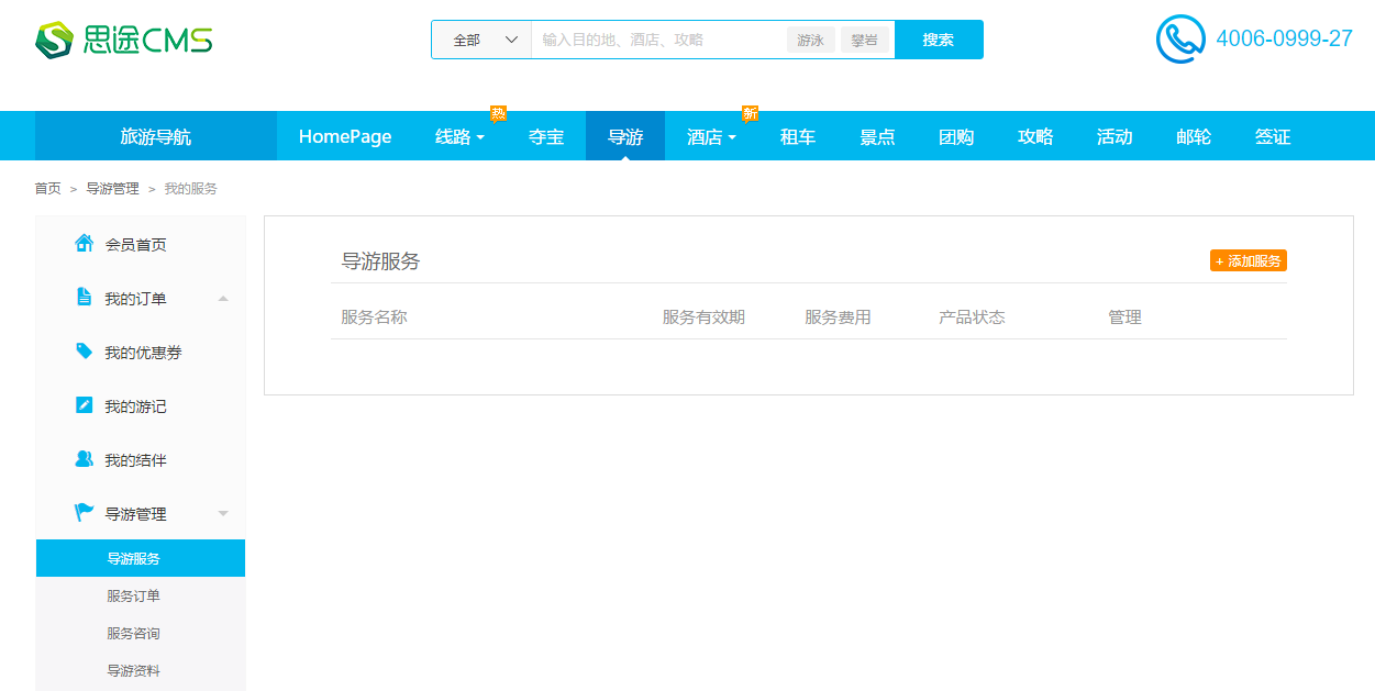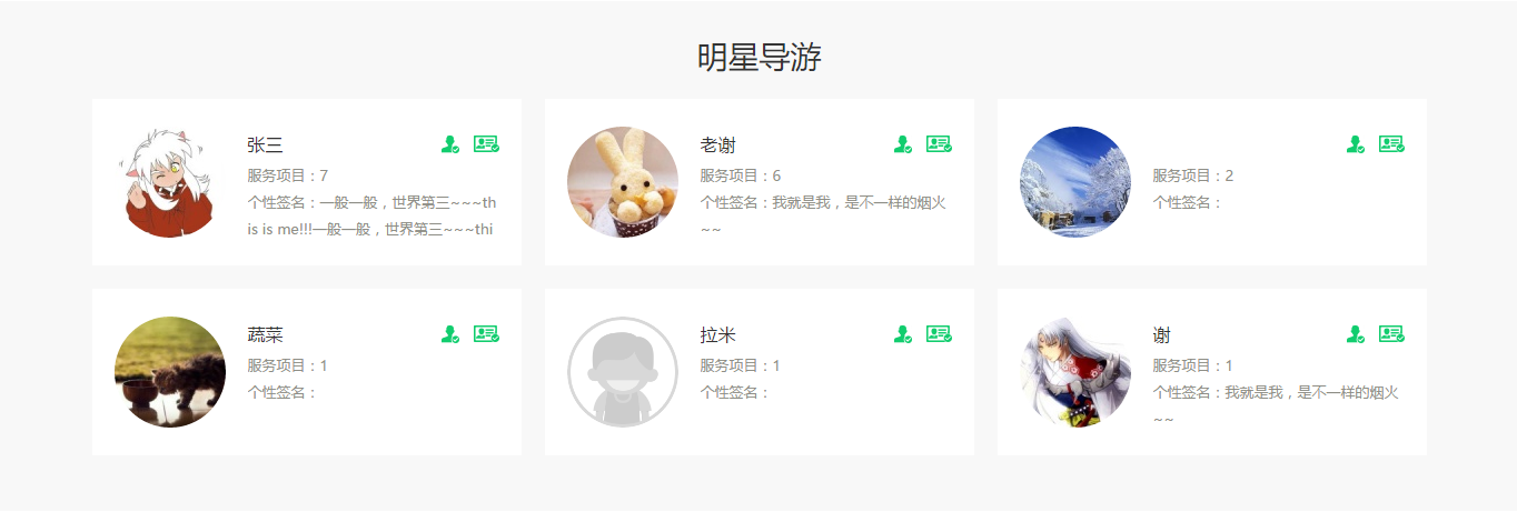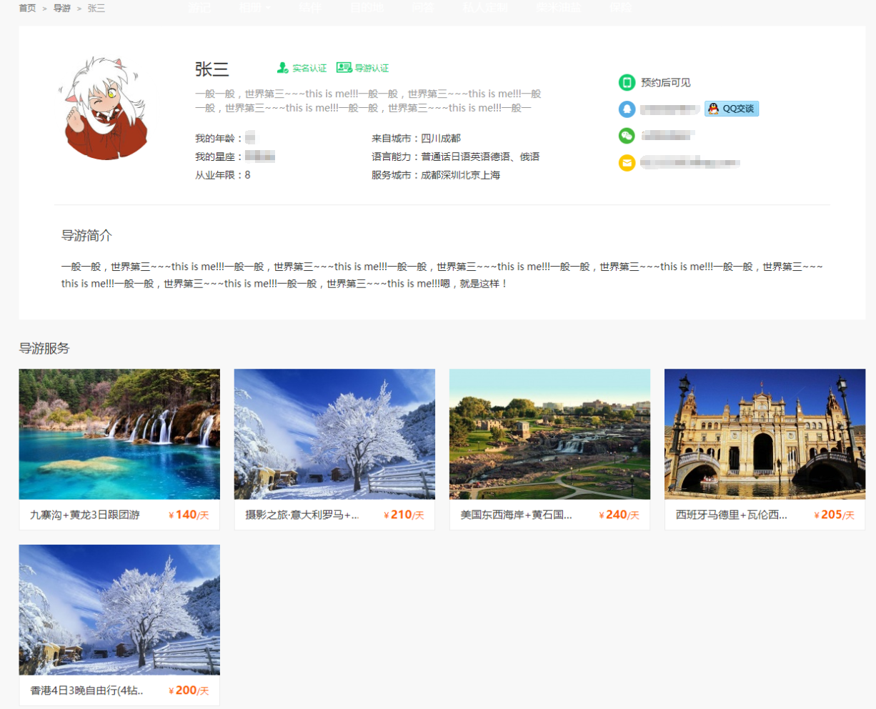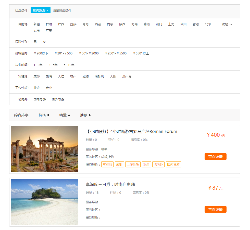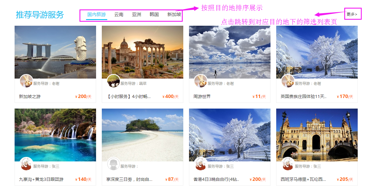 3、推薦導游服務4、明星導游:按照導游下的服務數量展示