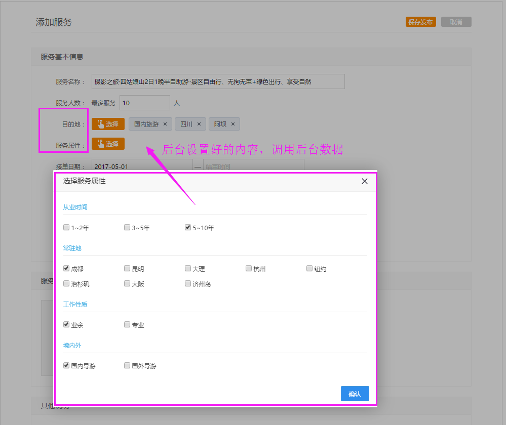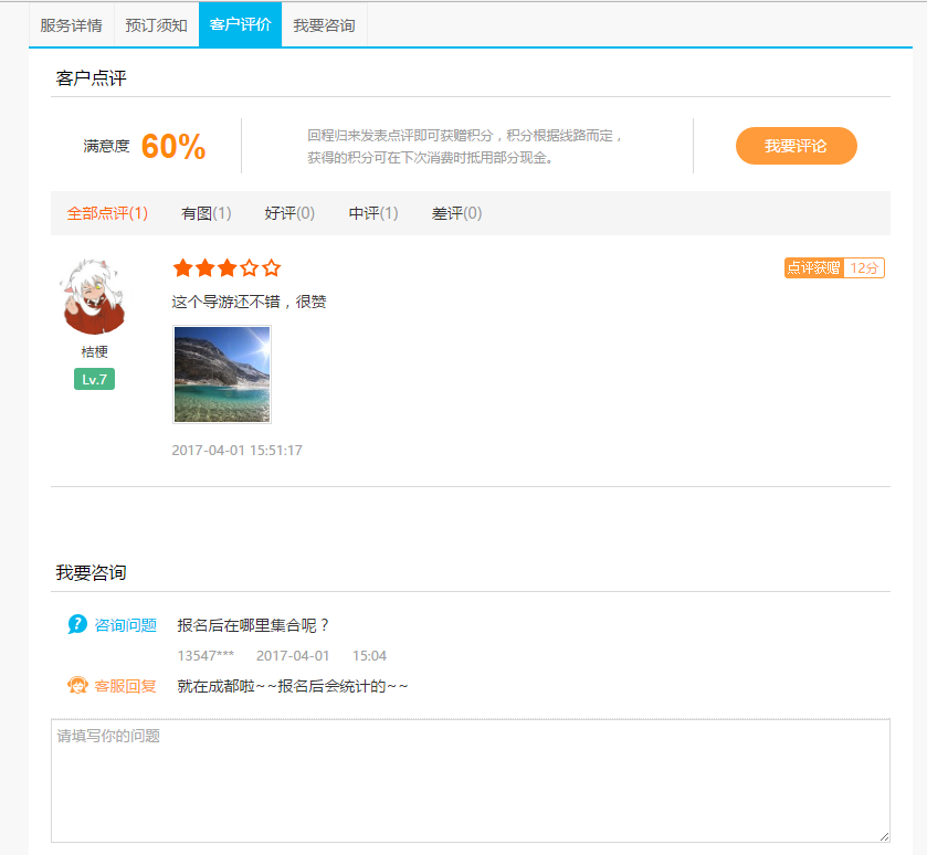 4、導游內容介紹:服務圖片、服務詳情、預訂須知為固定內容,可根據需要自定義添加