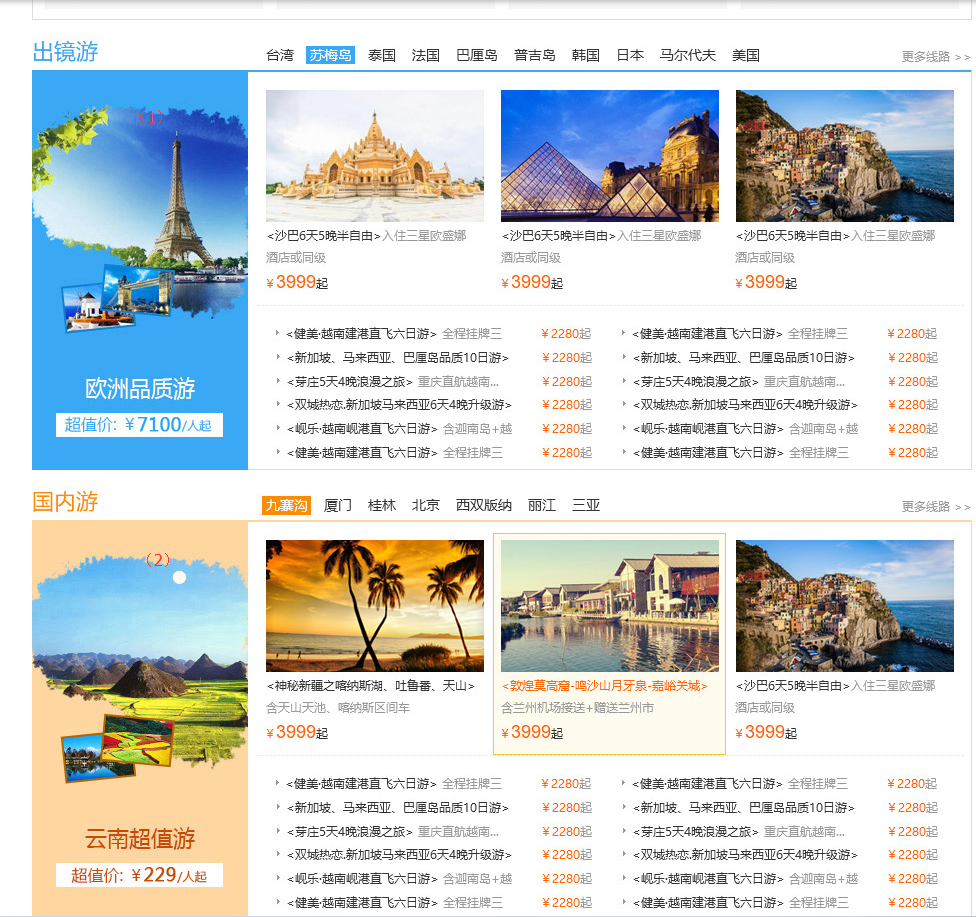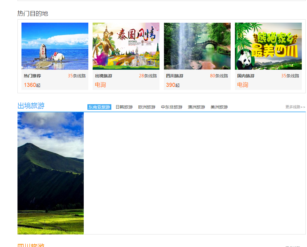綠色小清新線路首頁模板,線路版塊最多可設置三個線路版塊(版塊設置可請參考http://www.sdwrbc.com.cn/help/show/708.html),這三個線路版塊的廣告位均有自己的獨立標識