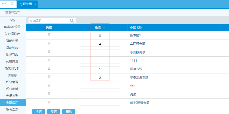 此處顯示內容為專題應用的專題內容,一共可以顯示4個專題,順序規則是按后臺數字排序: