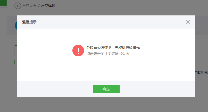 1.4成功安裝證書后,可返回產(chǎn)品中心申請(qǐng)“h5支付”