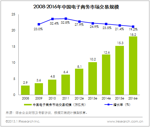 艾瑞咨詢分析認(rèn)為,電子商務(wù)市場規(guī)模增速有所回落,其原因主要是2012年國際貿(mào)易增速回落,歐洲債務(wù)危機(jī)不斷加劇,美國經(jīng)濟(jì)復(fù)蘇緩慢,全球經(jīng)濟(jì)收縮步
