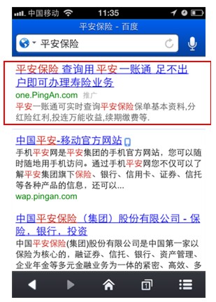 移動搜索推廣是指:當網民使用手機等移動設備進行搜索時,在搜索結果中,展示推廣的結果。