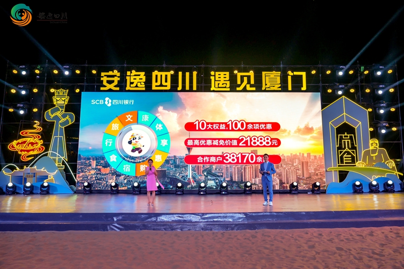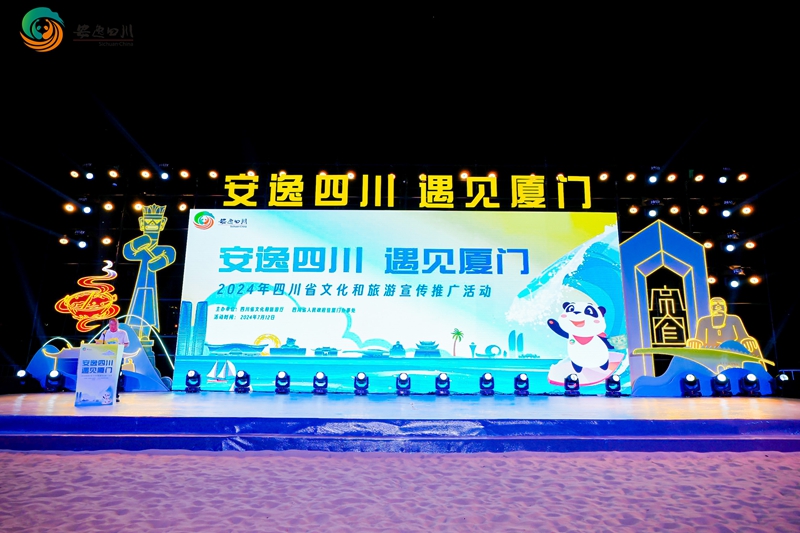 可愛的大熊貓、神秘的三星堆、藏羌彝民族風情展……7月12日晚,福建廈門椰風寨沙灘上,愜意海風伴隨濃濃巴蜀韻,2024年四川省文化和旅游宣傳推廣活動在這里舉行。