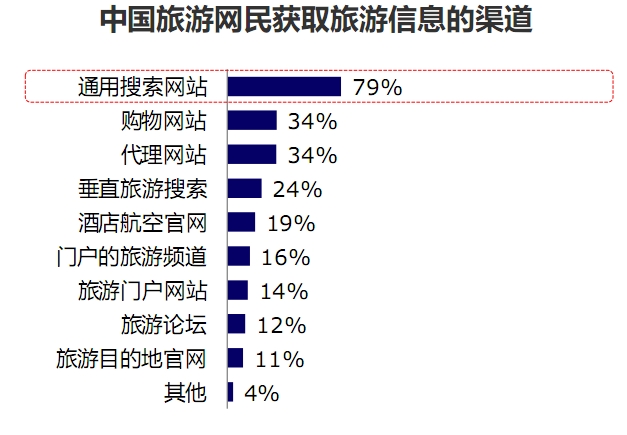 ②搜索引擎占據了絕大部分的比例,其次是購物網站、代理網站、垂直旅游搜索比較較大。