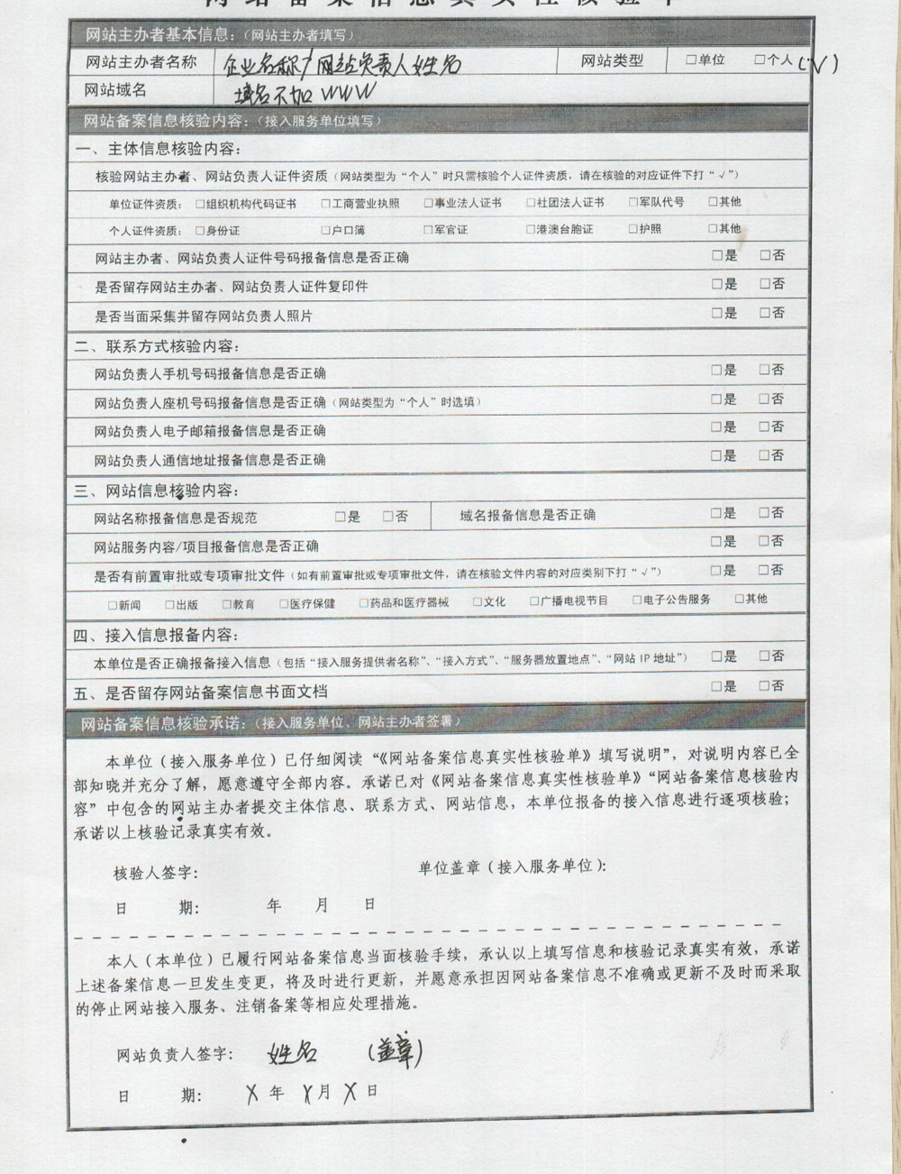 1、 網站備案信息真實性核驗單2份 (蓋公章)
