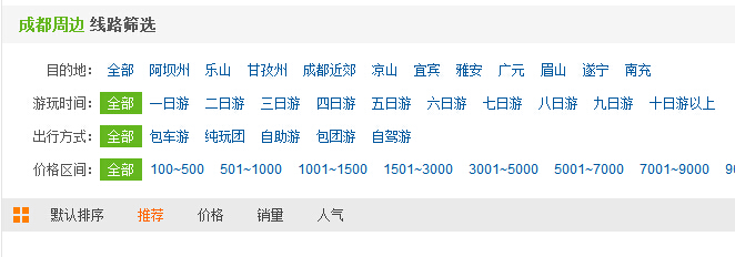 對于多數中小旅游網站,用戶直接通過輸入關鍵詞找尋信息,往往因為數據量有限,什么也搜索不到;另外從用戶體驗角度,直接點擊比輸入要輕松得多,所以將潛在分類,關鍵詞列舉出來,直接讓客戶點擊的方式,對于實現網頁扁平化結構功不可沒