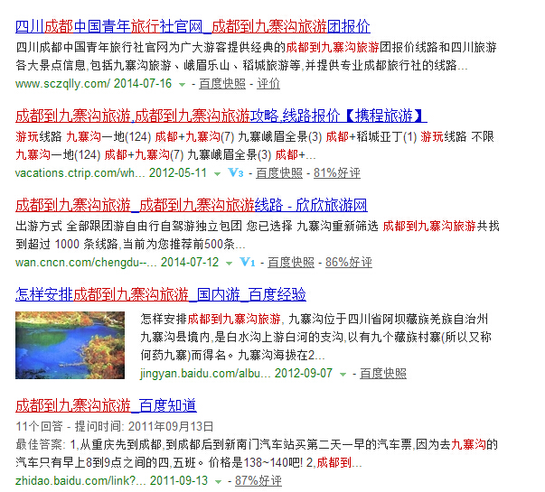 ②合理的鑲嵌關鍵詞:在描述的語句當中,一定要適當?shù)某霈F(xiàn)關鍵詞2次到3次左右。此種做法更有利于搜索引擎對網(wǎng)頁的判斷,讓網(wǎng)頁排名更靠前,以下是排名在百度前四的描述舉例(飄紅部分為描述中的關鍵詞):