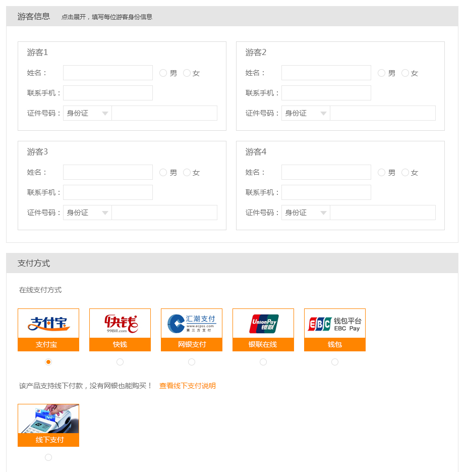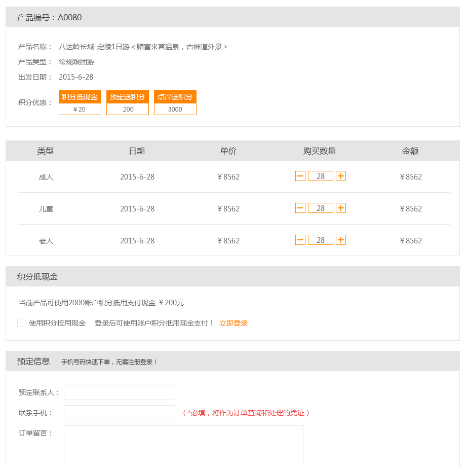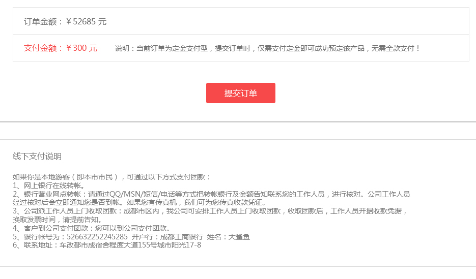 全新的預定流程實現客戶快速預定和快速查詢,客戶無需注冊登錄填寫手機號碼即可成功預定產品,并增加了全站的線下支付和線下支付說明功能,方便客戶線下轉賬等多種付款方式。