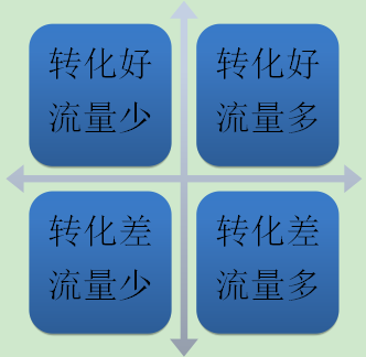我們可以通過象限分析法進(jìn)行分析處理,請看以下流量象限分析圖: