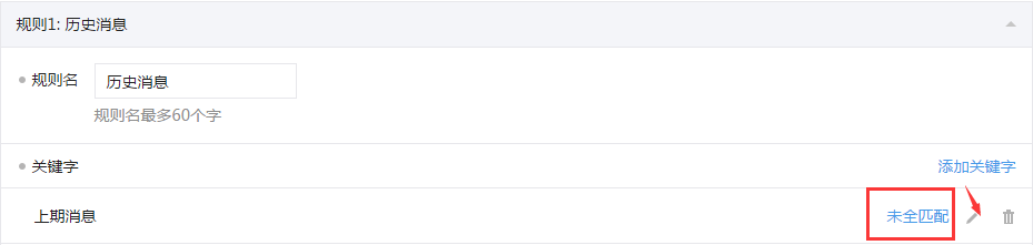 點(diǎn)擊下圖中的筆樣圖標(biāo)可對關(guān)鍵字名稱進(jìn)行修改,點(diǎn)擊圖5的“已全匹配”可以切換成“未完全匹配”,再次用手機(jī)進(jìn)行測試。