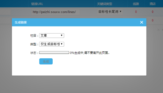 1、選擇該關(guān)鍵詞點(diǎn)擊界面右上角“生成”按鈕,系統(tǒng)將彈出以下對(duì)話框(如圖):