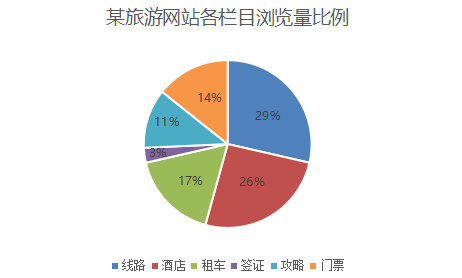 通過分析網站各欄目的瀏覽量,可以總結出游客的訪問興趣點。下圖顯示了某旅游網站訪問游客主要集中在線路欄目和酒店欄目。站長在對網站進行更新和營銷推廣的時候,就應該更多地針對這兩個欄目來進行。