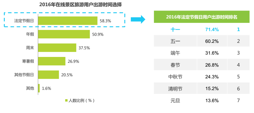 58.3%的在線景區(qū)旅游用戶選擇法定節(jié)假日出游