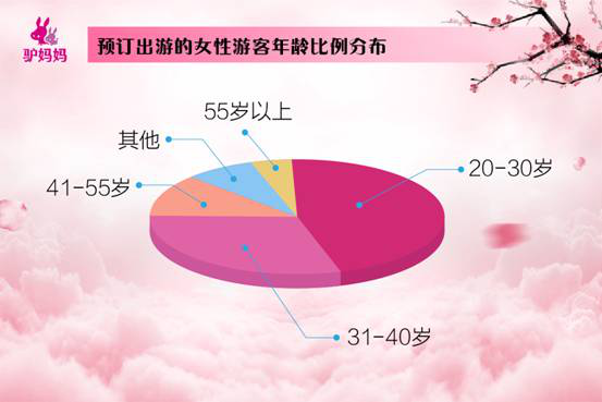 在出游人數變化明的同時,女性游客出游年齡分布則呈年輕化趨勢發展。《報告》顯示,過去一年間,出游女性游客中,20歲--30歲人群出游比例最高,占比為總人數的45.5%;其次為31--40歲人群,占比為32%,80后、90后女性游客依然是出游主力群體。