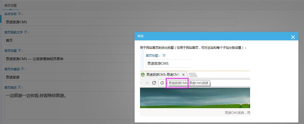 針對用戶使用系統(tǒng)時(shí)的每個(gè)配置項(xiàng)目,思途CMS都提供操作幫助指導(dǎo)。幫助用戶更好地理解配置項(xiàng)目和操作方法。云端幫助體系將大大提高用戶使用系統(tǒng)的效率。