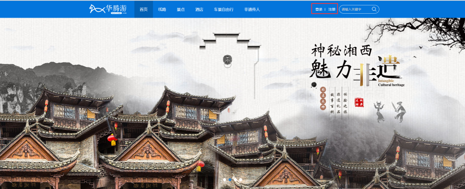 如下圖所示是使用思途CMS的華騰游,它的頂部右側放了登錄/注冊按鈕。