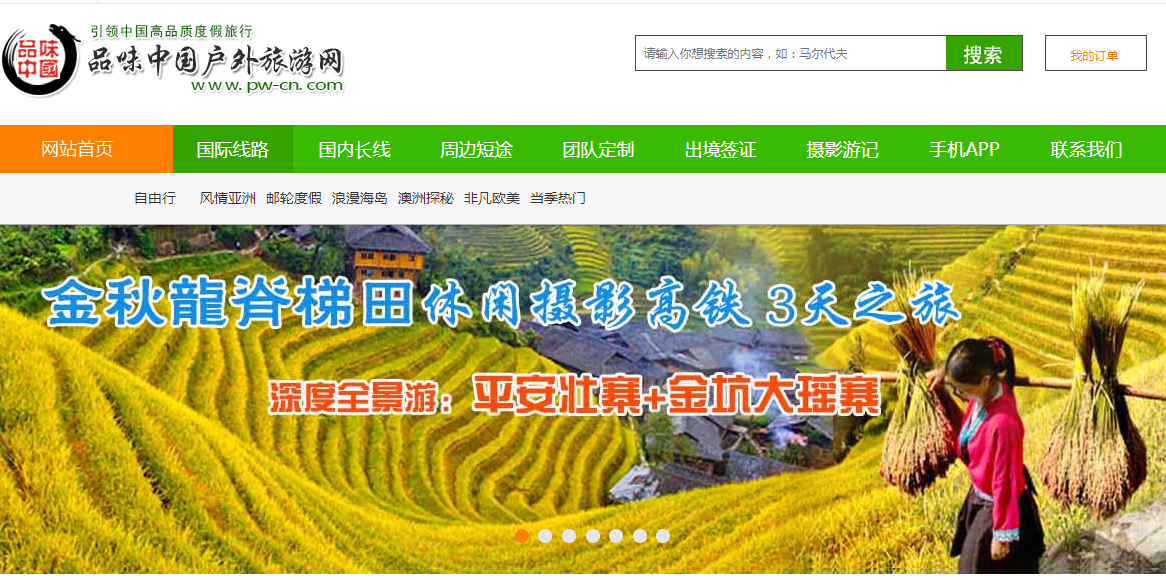 如下圖所示是使用思途CMS的品味中國戶外旅游網,把鼠標放到“國際線路”上時下方自動出現二級子導航項。